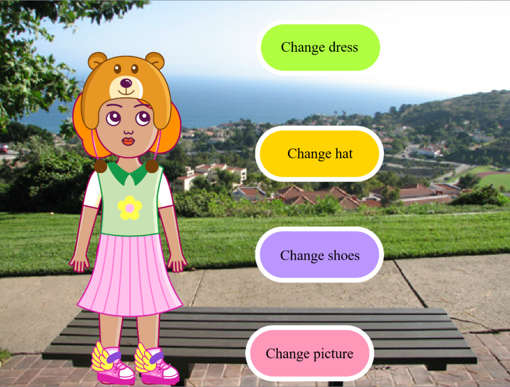 She created her own fashion game where players can change the girl’s attire, with background music that makes it lively. A very impressive effort for her age, and it looks fun and cute for young kid.